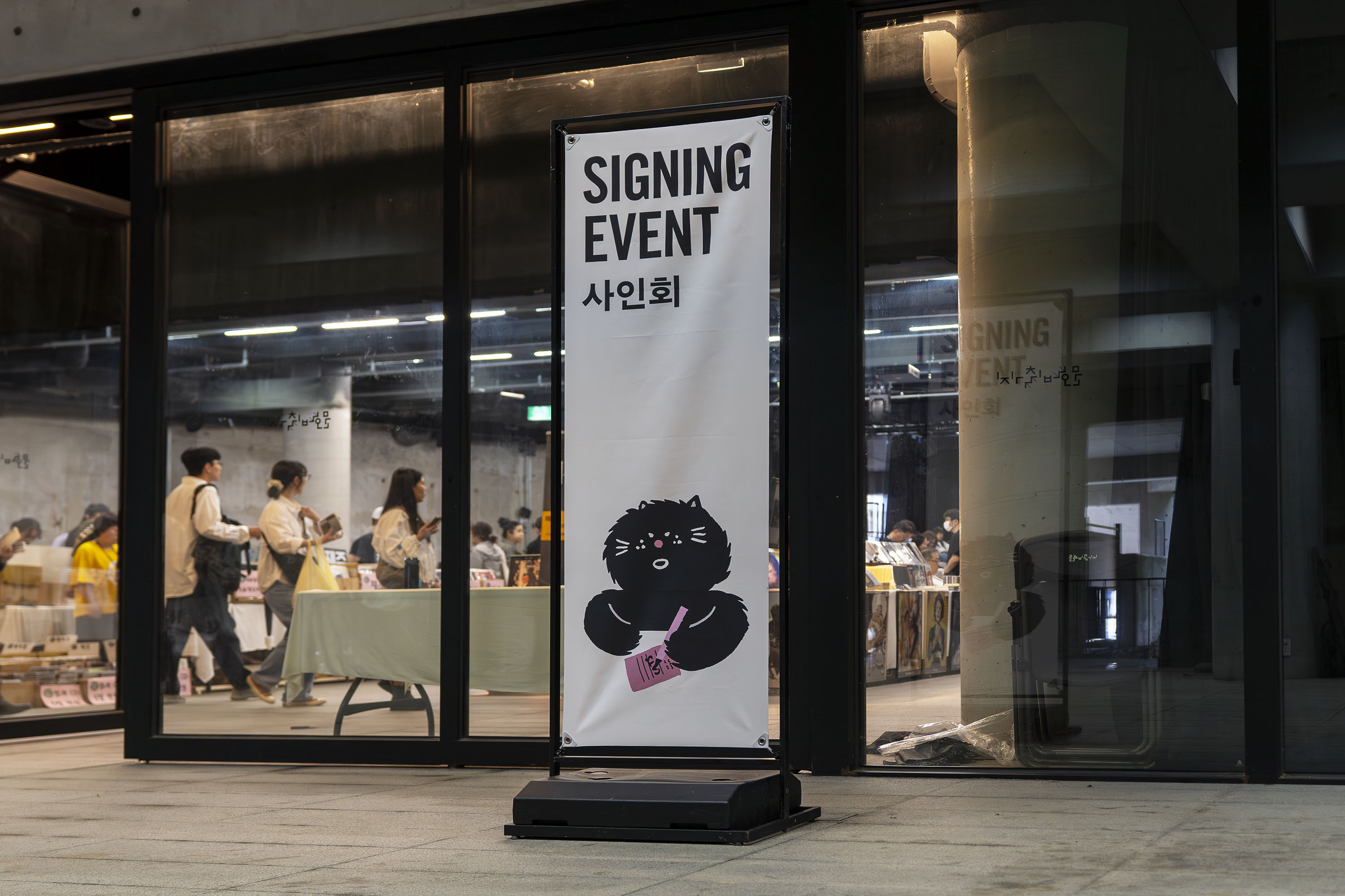 The vinyl record market remains strong in the United States, with growing demand even as overall music sales decline. Inspired by this trend, three underground record labels in Korea joined forces to meaningful impact the domestic music market. The primary design challenge was attracting new audiences and satisfying loyal fans. The design needed to retain the nostalgic appeal of vinyl records while incorporating contemporary elements to engage younger listeners. I opted for a minimalist approach to create a cohesive visual identity that brought together multiple vendors. The use of a solid black color, reminiscent of vinyl records, served as the primary graphic motif. This choice not only conveyed the essence of the event but also helped reduce production costs by utilizing a single ink color for printing.