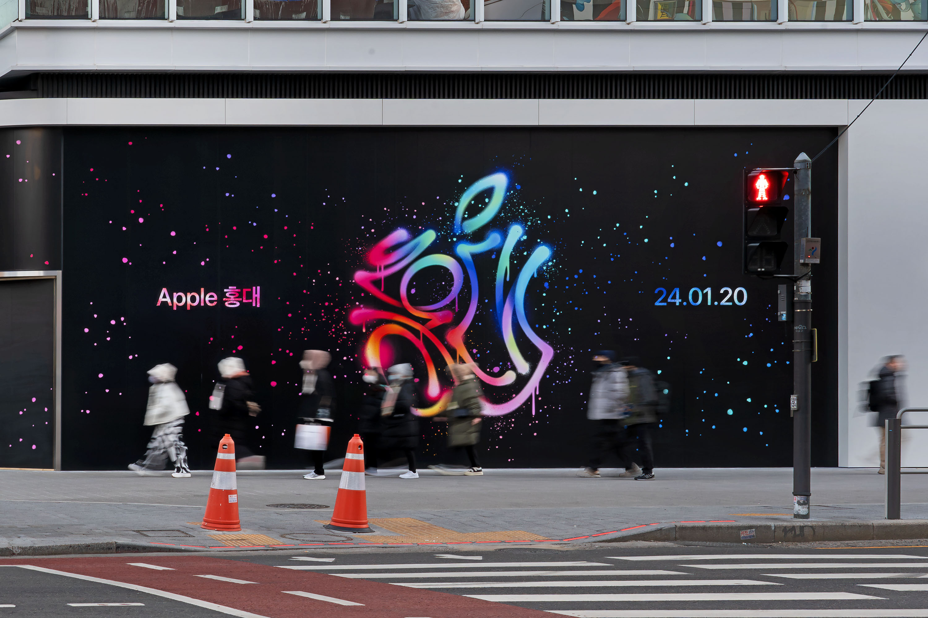 Studio fnt was responsible for the graphic design of three Apple Store openings in major areas of Seoul from March 2023 to January 2024. This challenging project required us to blend the distinct characteristics of three unique locales—Gangnam, Hanam, and Hongdae—with Apple’s identity. The third was the Hongdae Store.