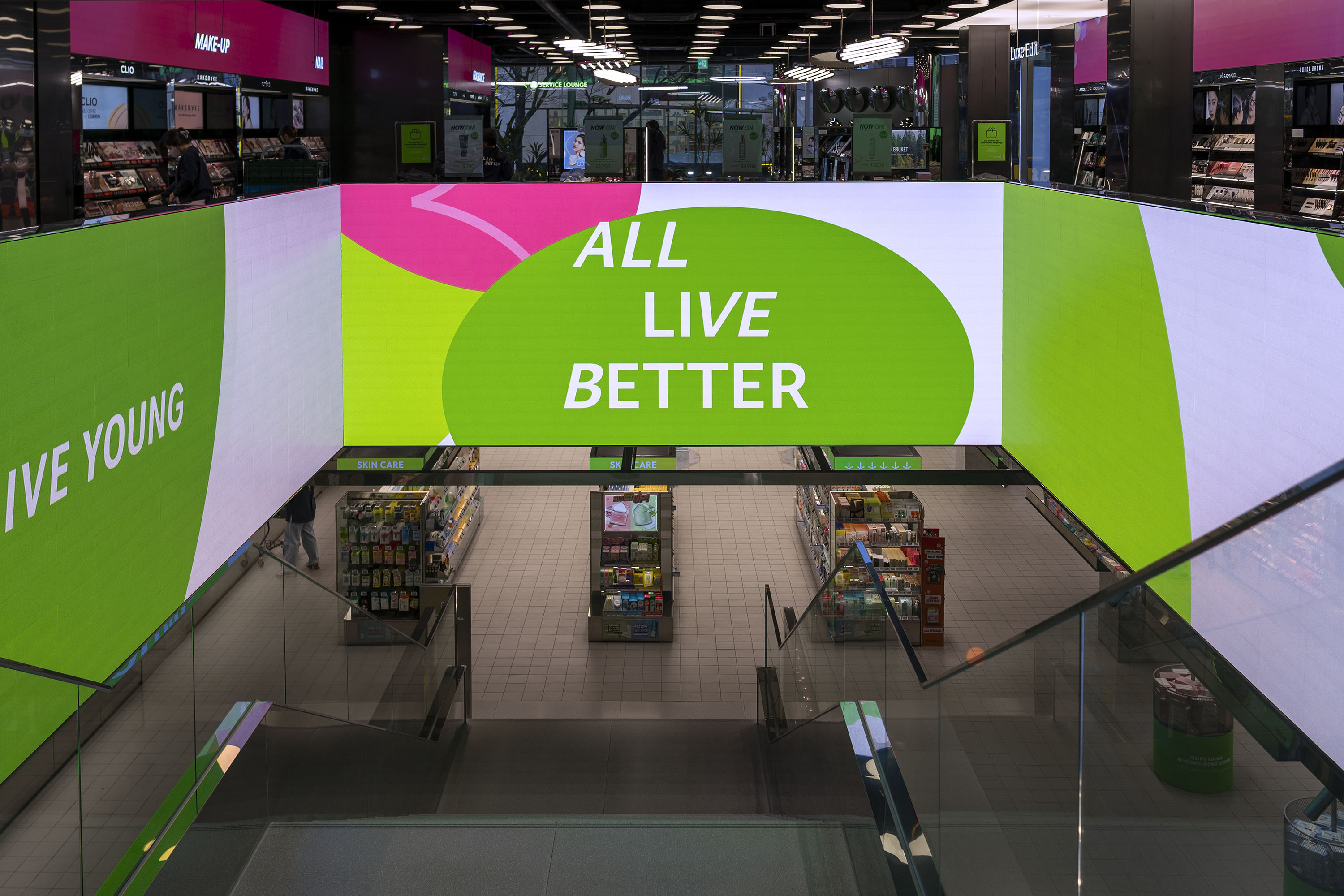 Olive Young, a pioneering brand in the domestic health and beauty (H&B) market, offers a diverse range of domestic and international cosmetics alongside imported confectionery. It boasts the most significant number of stores in Korea. Studio fnt undertook a task to redefine the brand identity’s application system, encompassing graphics, and colors to be progressively implemented across major branches while designing in-store applications and gift packages.