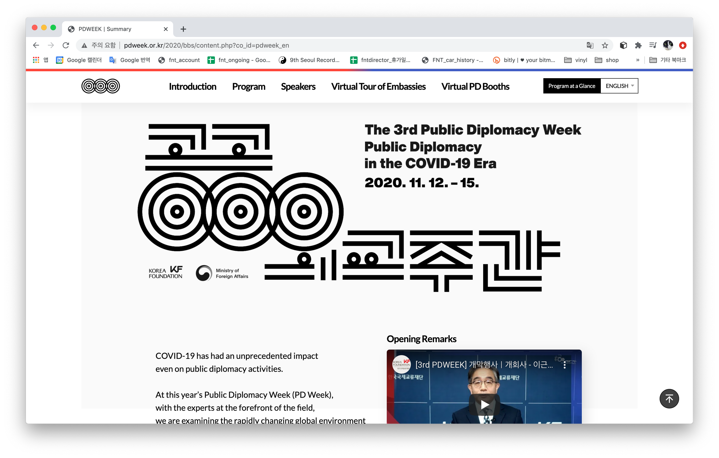 Public Diplomacy refers to diplomacy by the public for the public, unlike the traditional diplomacy centered on existing government-government negotiations. Public Diplomacy Week is an event organized by the Korea Foundation and the Ministry of Foreign Affairs of the Republic of Korea, where you can explore the achievements and prospects of public diplomacy with the experts at its forefront, and hear their stories of various public diplomacy activities. There are also opportunities available for those seeking career paths in related fields.